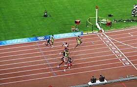 До 2008 года его основной дистанцией была 200 метров, лишь однажды в 2007 году он выступил на дистанции 100 метров на официальных соревнованиях. Первыми соревнованиями олимпийского сезона стали GC Foster Classics, которые прошли 8 марта в Спаниш-Тауне. Болт выиграл стометровку с результатом 10,03[49]. 3 мая он выиграл международные соревнования Jamaica International Invitational в Кингстоне, его победное время на дистанции 100 метров составило 9,76 — это стало вторым временем в истории на тот момент[50]. Менее месяца спустя, 31 мая на соревнованиях Adidas Grand Prix в Нью-Йорке, Болт установил новый мировой рекорд на дистанции 100 метров — 9,72, побив достижение Асафы Пауэлла. Последними соревнованиями перед Олимпиадой в Пекине стали Athens Grand Prix 3 августа, которые он выиграл с результатом 19,76[51].