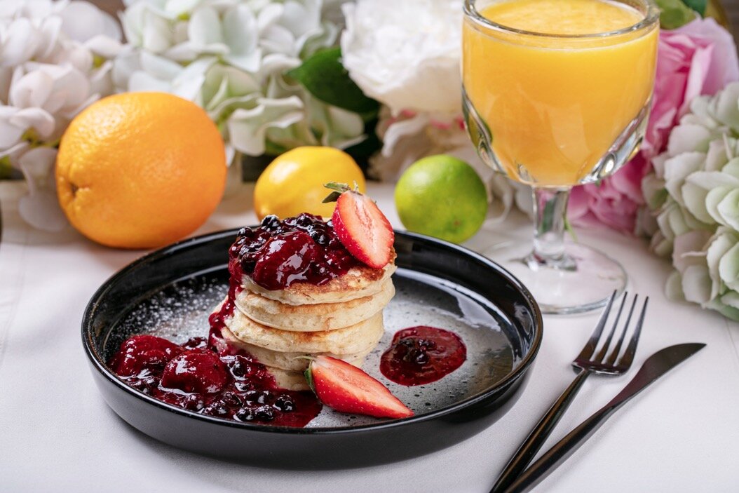 - Увеличить огонь до максимума. И на сильном огне быстро перемешать ягоды с маслом и добавить сахар. Когда сахар растопился и ягоды дадут сок можно выкладывать массу на готовые панкейки.