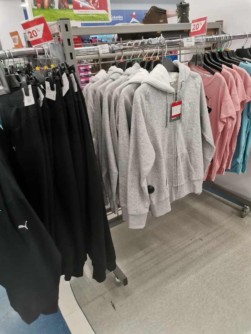 Спортивные штаны от "Puma" - классический вариант такой одежды, со скидкой их продавали за 1799 рублей и выше. В распродаже было несколько моделей, поэтому можно и подешевле взять, и подороже. Толстовки мне не понравились совершенно, но и цена высокая - даже со скидкой 3499 рублей.