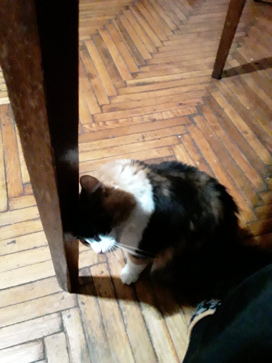 Ходит вокруг ног и трётся. Жрать ей дай. А фиг там. Пусть терпит до 21-00. В это время приходит моя жена и её кормит. Нельзя нарушать режим. Пусть терпит, пока я про неё напишу.