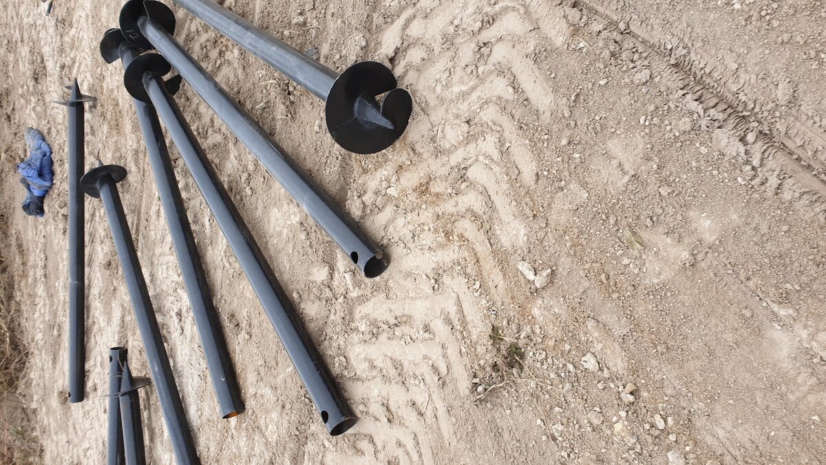 Сваи у нас 2,5 метра. От каждой сваи, после ввинчивания, отпилили примерно 30-40 см. Мы просили сильно не опускать фундамент, т.к. планируем поднимать участок. В итоге высота свай получилась от 55 до 65 см над уровнем земли, плюс ростверк (труба) - 8 см.