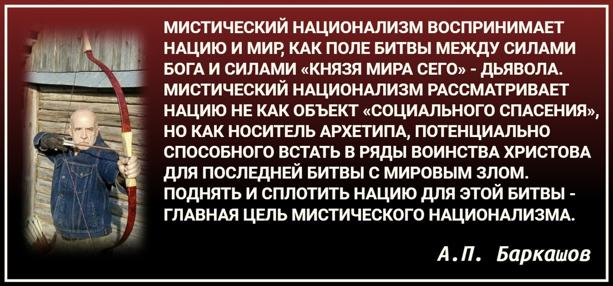 Поднять и сплотить Нацию для этой битвы - это главная цель Мистического Национализма. Не временное и относительное благополучие отдельной Нации в системе сатанинской и подыхающей цивилизации, которая провоцирует низменность человеческих страстей, убивая Души Людей, но сокрушение этой цивилизации и есть Мистический Национализм!