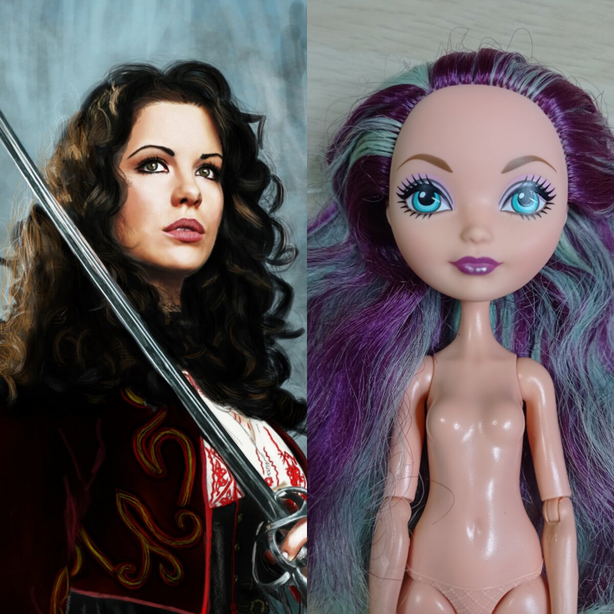 Всем привет! Меня зовут Александра, и я увлекаюсь преображением (ООАКом) кукол Monster High и Ever After High. В последнее время мне везет на преображение куколок Ever After High. Вот и новый заказ опять с такой девочкой. Героиней сегодняшней переделки стала Мэделин. Куколка была нежно любима своей хозяйкой, поэтому она и ее мама не сразу приняли решение отдать ее на переделку. Но вот Мэдди у меня в руках и ей предстоит стать очень интересным персонажем - Анной Валериус из фильма Ван Хельсинг. Фильм вышел 16 лет назад. Насколько я помню, тема Фентези в то время только набирала обороты. Фильм был (остается и сейчас) очень крут. Анна Валериус, просто, невероятная. Красивая девушка с печальной судьбой, стоящая на страже простых людей и их душ. В общем, я с удовольствием пересмотрела фильм перед тем, как начать работу. Очень красив ее костюм со множеством металлических пряжек и заклепок, народной вышивкой и обалденно-высокими сапогами. Вот так выглядела Мэдди перед началом работы. Фото