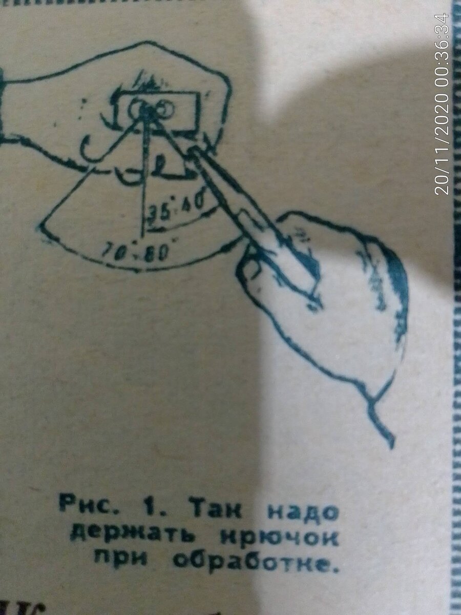 Его несложно сделать из имеющихся в продаже двойных неспаянных крючков №7-12. Зажав головку крючка круглогубцами (рис. 1),отгибают плоскогубцами один из концов двойника в сторону на 35-40 градусов. Затем поворачивают его 180 градусов и, зажав головку в круглогубцах, отгибают второй крючок так, чтобы угол между обоими составил 75-80 градусов. Если головка