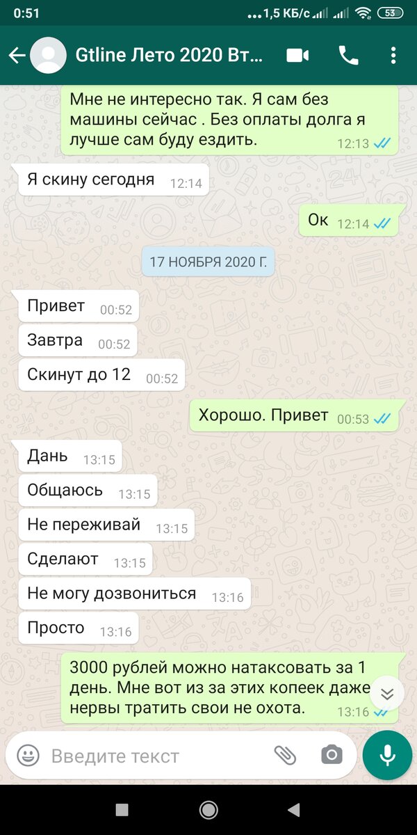 p.s. прикладываю скрин про подобного водителя как подтверждение своих слов(сегодня он мне надиктовывал голосовое опять предлагая "погасить" старый долг), это другая история где арендатор оптимы за 1 день умудрился поймать 5 крупных штрафов и не оплатить аренду, проездил он ровно 1 день 1,5 года назад(после чего сразу машину у него забрал и не жалею). И вот он до сих пор пытается взять у меня машину не оплатив старый долг, при этом кому-то он уже успел расчехлить оптиму чуть ли не в тотал, этой весной, а мне звонили эти горе арендодатели спрашивали, как так они его взяли, не смотря на мой гневный отзыв о данном водителе. И я вот тоже думаю, а как так, я же не зря время потратил и написал, что водитель "слово на скриншоте ниже" и давать авто ему не стоит и как так, они ему её дали под убой.