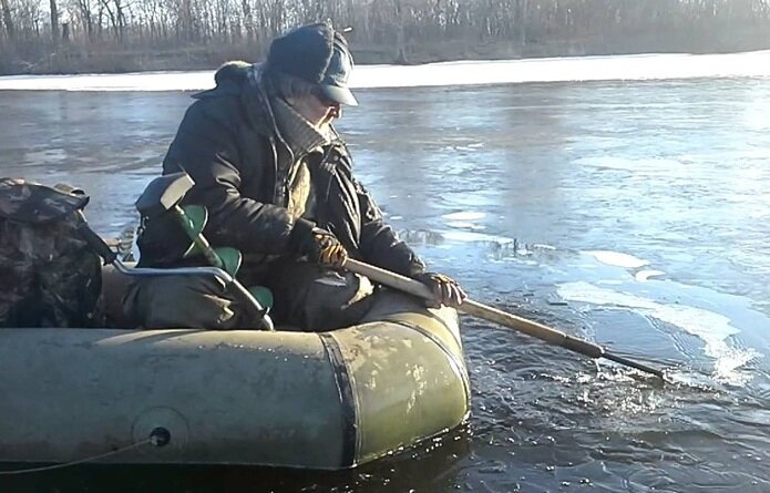 Поэтому лучше использовать традиционный длинный шест и спасательный надувной жилет, и движение по льду в проблемных местах осуществлять только при необходимости.