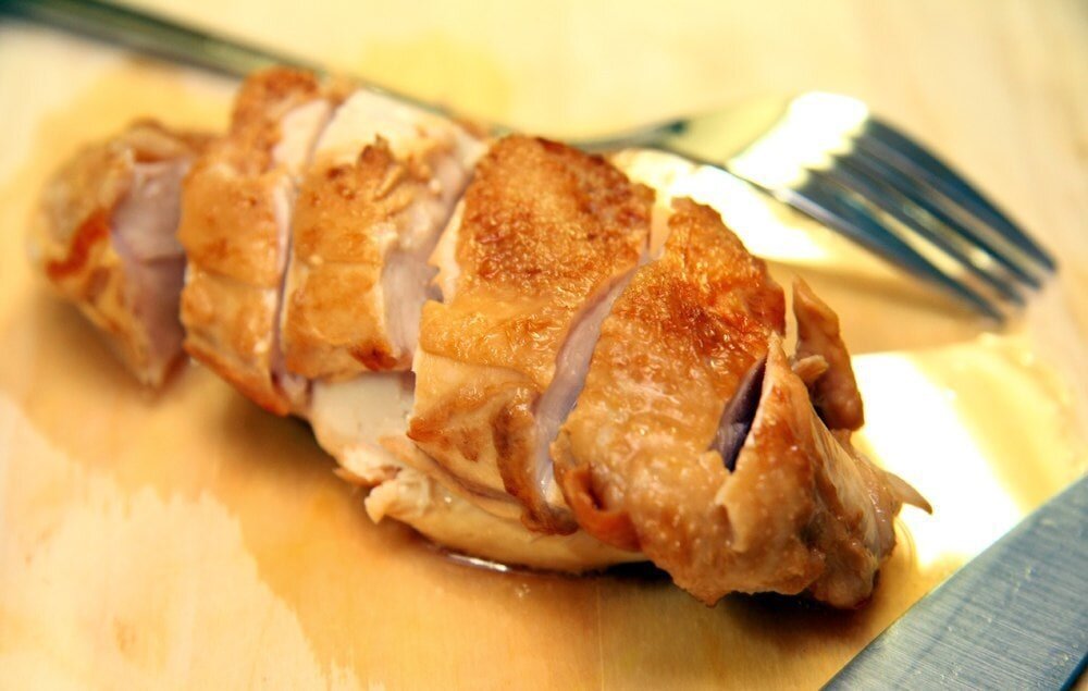 Соевый соус смешайте с лимонным соком и залейте грудки получившимся маринадом, накройте сверху тарелкой и поставьте небольшой груз.