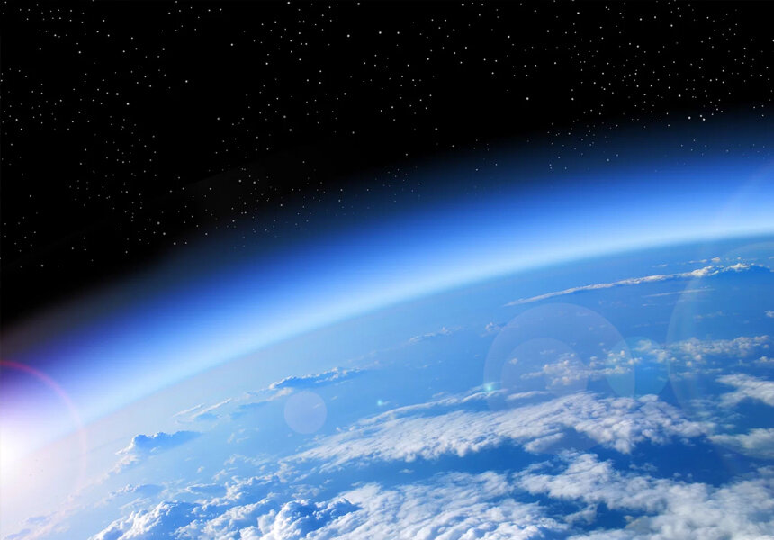 Почему она приобретает такой голубой цвет? Потому что солнечный свет, проходящий через атмосферные Газы, поэтому и вид синий.