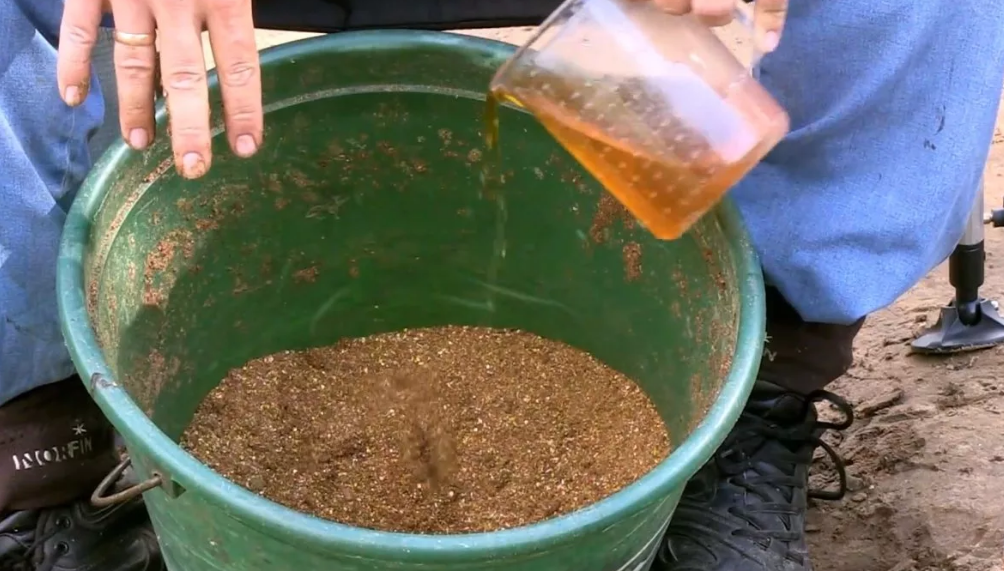 - Добавление в прикормку. Для этого нужно сначала разбавить жидкий дым в воде, а только потом добавлять в прикормку! Не добавляйте чистый концентрат. Пропорции такие: на 100 грамм прикормки, 1 столовая ложка концентрата дыма.