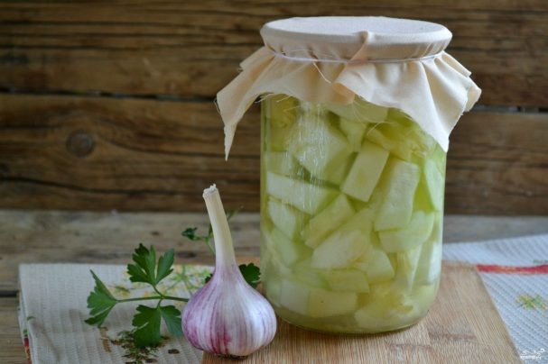 - Кабачки и чеснок отчищаем, первый от кожуры, второй же от шелухи.