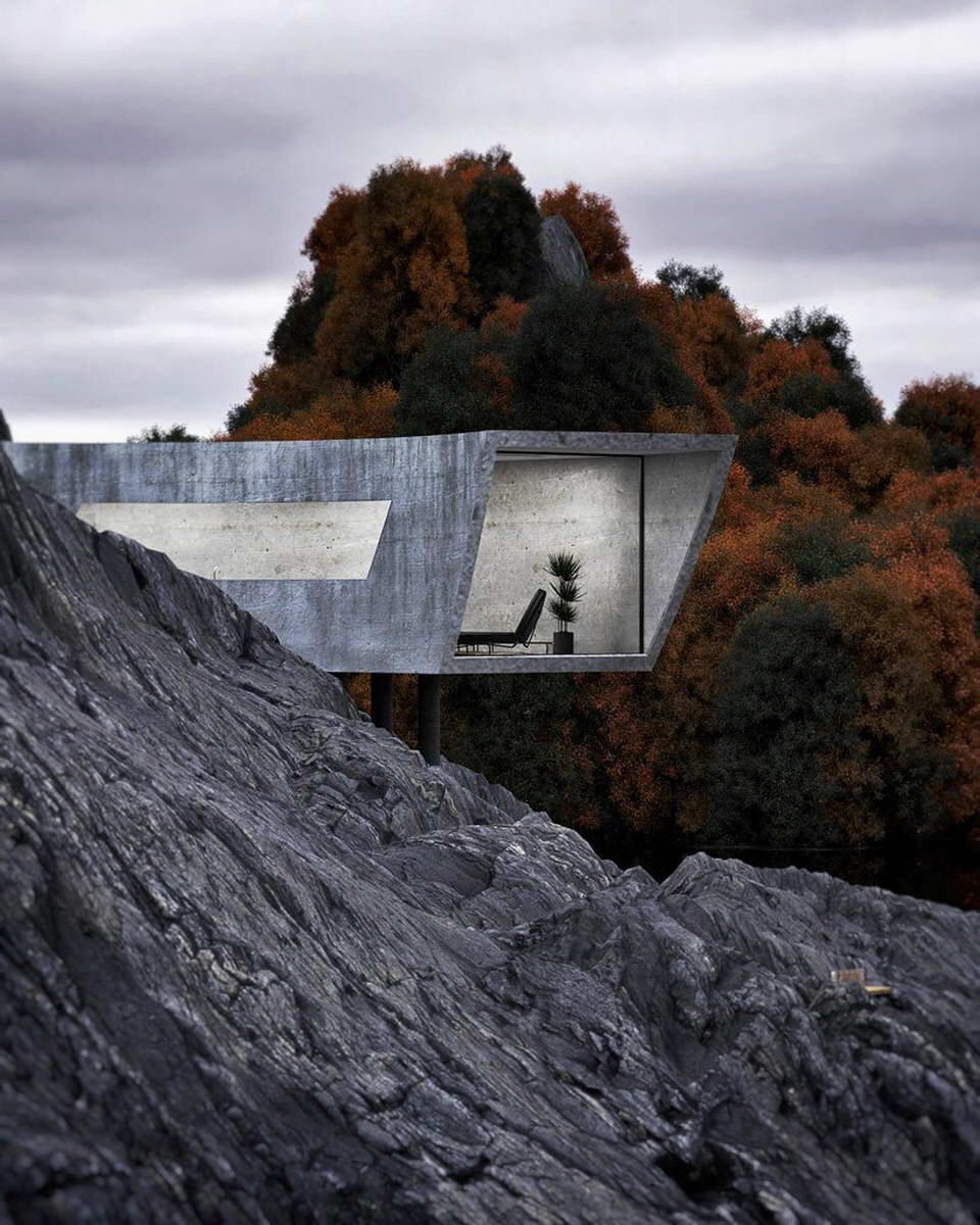 Этот удивительный брутальный дом находится в Иране и реализовал проект иранский архитектор Реза Мохташами. Очень правильное решение сделать дом из бетона, который отлично вписывается в скалистый рельеф.