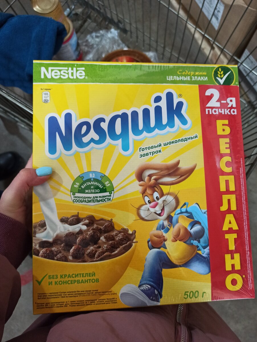 Моя девочка очень любит на завтрак Nesquik. И когда я увидела это, была о приятном удивлении. В одной пачке 500 г. Но и это еще не все потому что вторая оказалось в подарок.