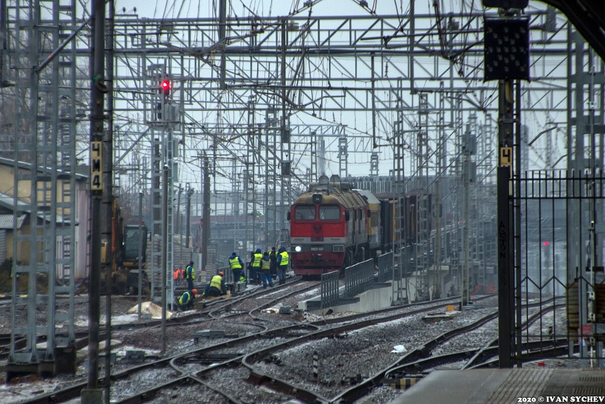 1. И предчувствия бывалых читателей "Записок" не обманули - первая фотография в сегодняшних записках действительно со станции Реутово. Которая сейчас достаточно активно перестраивается в свете планов по открытию здесь МЦД. Для того, чтобы частому проходу электропоездов из Железнодорожной (а по некоторым данным МЦД будет не в ЖелДоре оканчиваться, а в Электроуглях) не мешали "боковые" из Балашихи/в Балашиху построили путепровод, а сейчас достраивают второй, что, возможно, говорит о более частых электричках на Балашиху. Хотя смысл в них пока не понятен - они и так идут полупустые. Так вот, на строительстве железной дороги на втором путепроводе и был "пойман" рабочий поезд под тепловозом 2М62у-0107.