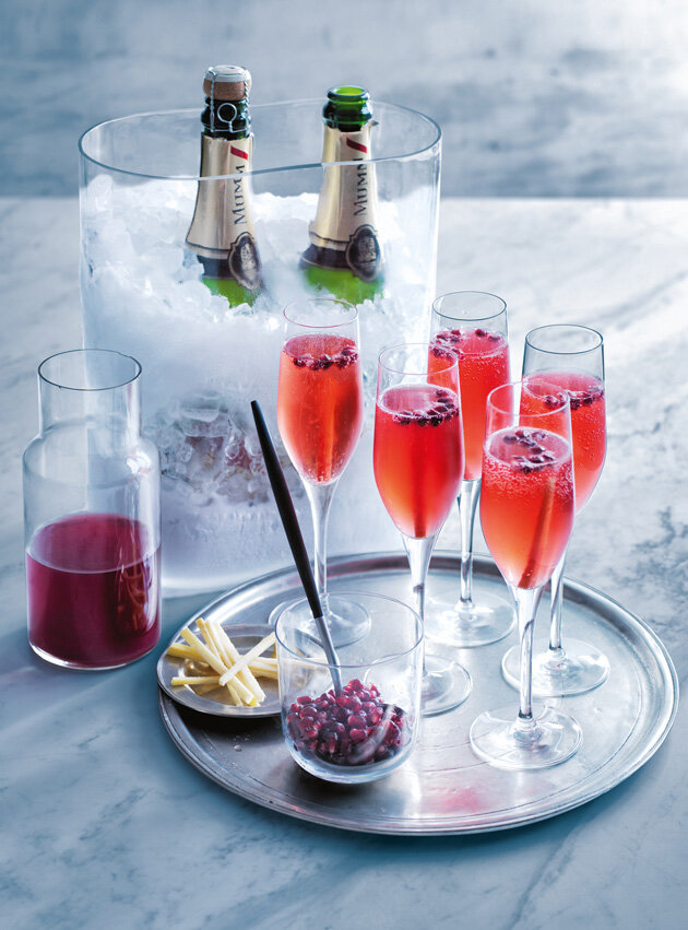 Нет более новогоднего напитка, чем шампанское. С ним загадывают желания и просто пьют под рождественской елкой. Шампанское или же просто игристые можно пить соло охлажденными, а можно сделать из них яркие вкусные коктейли и с ними встречать Новый год. Или просто угощать гостей перед вечеринкой в качестве аперитива. Коктейли на основе игристого — это очень просто. Берете любой ягодный или фруктовый сироп или ликер, немного ягод, экстремалы могут добавить в смесь крепкий алкоголь, например ром, и потом эту смесь заливаете холодным шампанским. Вот и все.