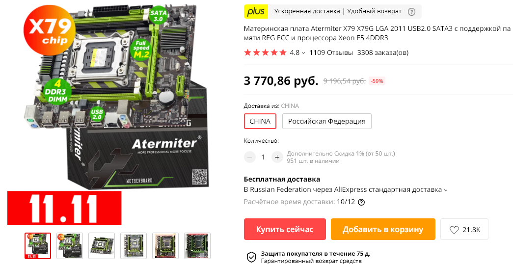 За основу мы возьмём бюджетную материнскую плату Atermiter X79 :