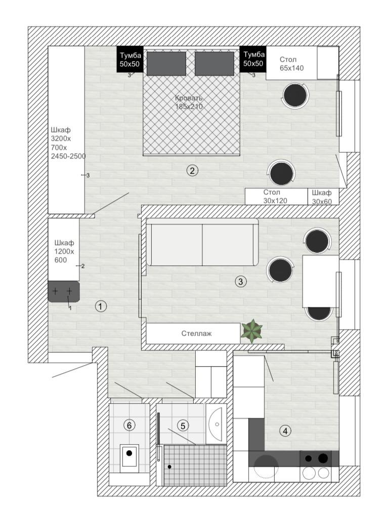 Мебелировка квартиры #1 была разработана для молодой пары. Площадь квартиры 42 кв.м.