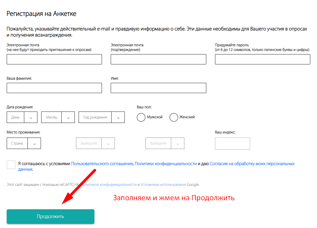 Вам потребуется перейти по указанной ссылке и честно отвечать на все вопросы. Именно от того, насколько добросовестно вы будете подходить к заполнению опросов, зависит то, какое количество анкет будет поступать вам ежемесячно.