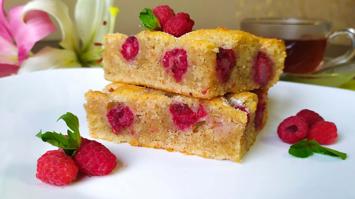 Изумительно вкусный и ароматный французский миндальный пирог Финансье с малиной. Этот десерт с тонкой хрустящей ореховой корочкой и мягкой, слегка влажной серединкой, настолько нежный, что просто тает во рту! Готовится очень просто, без миксера!