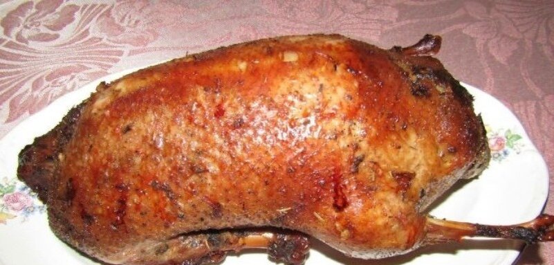При любом способе готовки рекомендую ставить форму с уткой на среднюю полку духовки, чтобы блюдо равномерно подрумянилось и не подгорело.