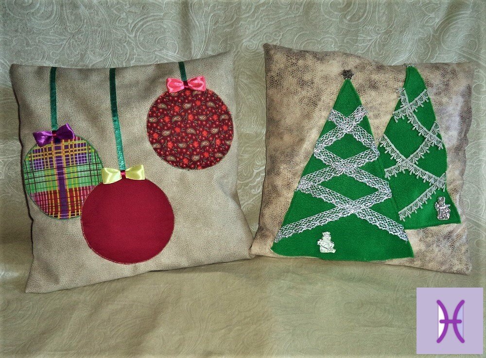 Новый год, это для всех какой-то рубеж. И все мы хотим оставить все старое в прошлом, уходящем году. И, наверное, поэтому многие делают ремонт в доме именно к Новому году. Кто-то меняет мебель, полностью обновляет интерьер. Но ведь не у всех есть такая возможность. А чего-то новенького хочется. Как вариант можно обновить текстиль в доме. И даже не шторы и покрывала, а просто сделать, например, на диванные подушки яркие новогодние наволочки-чехлы. Нарядные диванные подушки с новогодней символикой несомненно добавят праздничного настроения. Я тоже сшила несколько наволочек с новогодними аппликациями на свои диванные подушки. Некоторые идеи были позаимствованы на просторах интернета. Но, с добавлением своих деталей. Декоративные наволочки для подушек можно шить из любых материалов. Я свои наволочки шила из искусственной замши. Хочу сказать, что на все четыре наволочки не было потрачено ни одной дополнительной копейки. Все материалы покупались для других проектов. Но, всегда есть какие-то