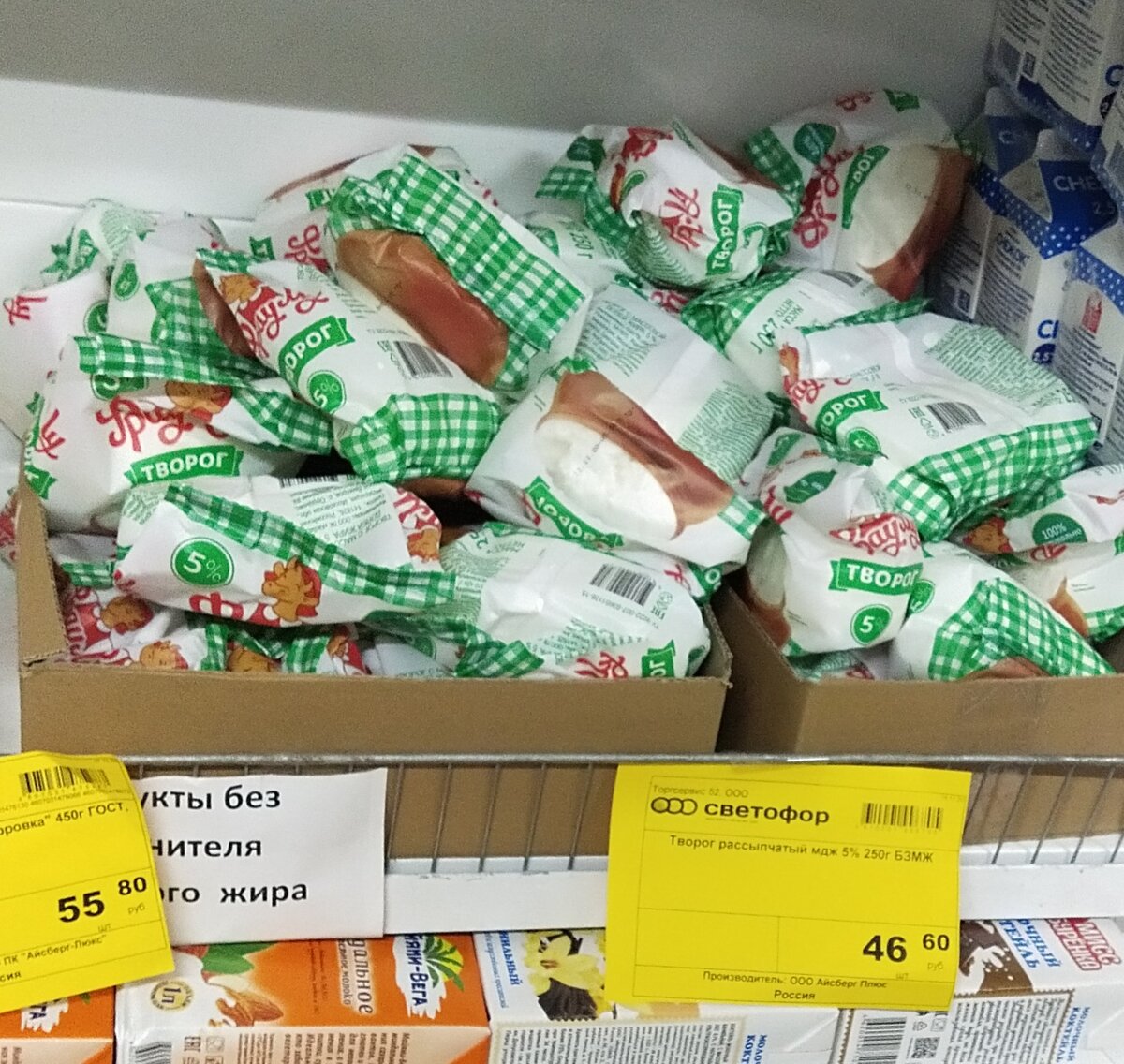 Упаковка стандартная 250 грамовая, с массовой долей жира 5%, цена для такого продукта совсем не высокая 46.6 рублей. Цена не высокая, но и не дешёвая как у творожных продуктов, хочется надеяться на лучшее.
