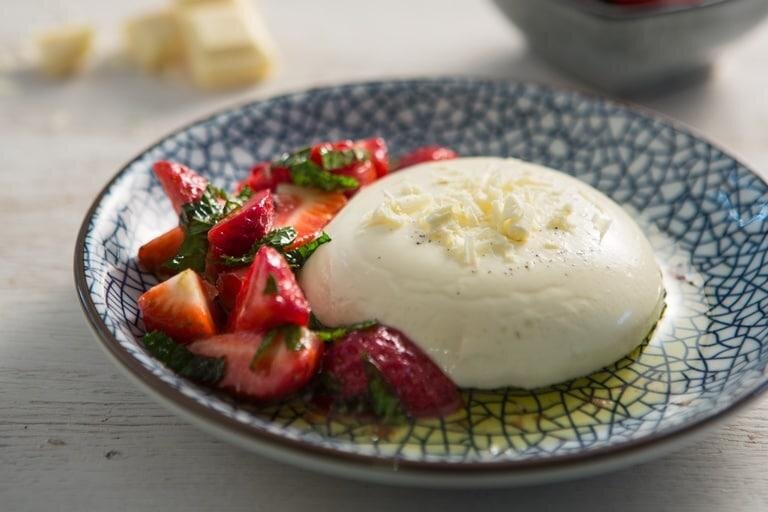 Панна котта из белого шоколада с лимоном, мятой и клубникой 🍓