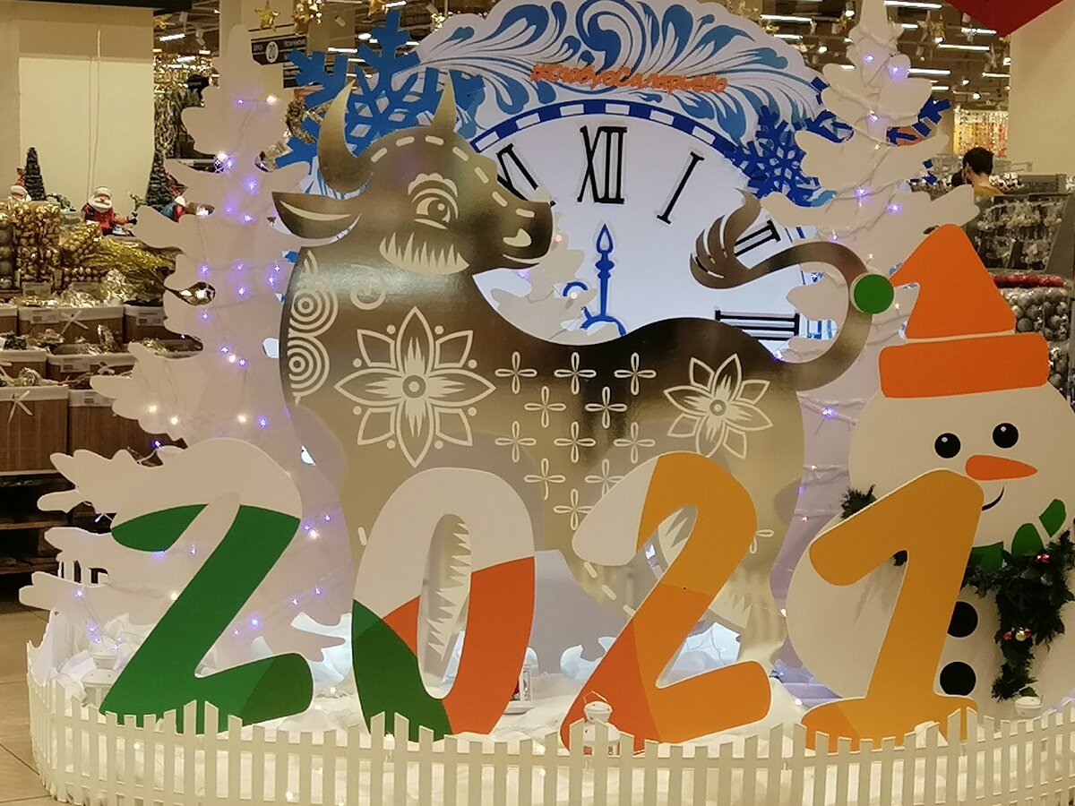 В Глобусе наконец-то появились новогодние товары. Съездили посмотреть. Сразу на входе вот такая фотозона.