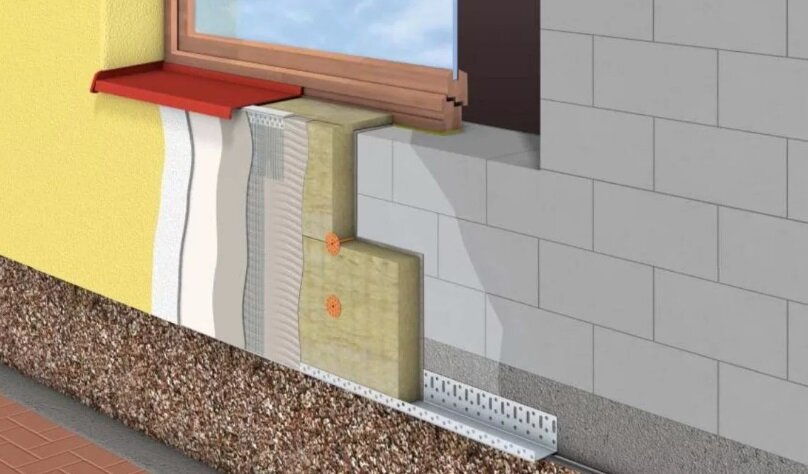 При монтаже обязательно должно быть соблюдено правильное расположение плит утеплителя. Располагаться они должны подобно кирпичной кладке – стыки плит в каждом новом ряду не должны попадать на стыки плит в предыдущем. Также стыки не должны попадать на углы окон и дверей.