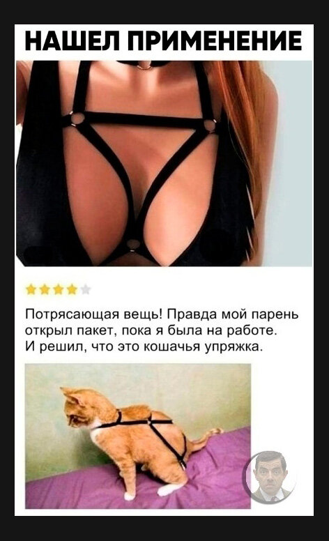 Мужчины, как часто у вас бывало такое, что вы использовали вещи вашей девушки не по назначению? С другой стороны, от куда было ему знать. Ремешки да лямочки, ну ведь вылитая упряжка. Главное что подошло))