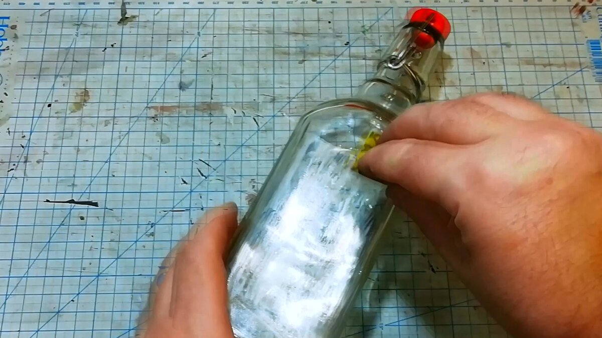 Избавляемся от этикеток на бутылке, и проходим по всей наждачной бумагой. Это нужно для того, чтобы создать сцепление с клеящим составом.