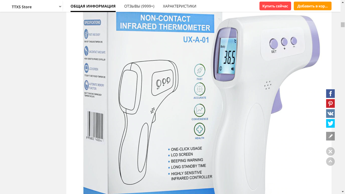 Стоимость данного бесконтактного термометра около шестиста рублей. Судя по отзывам быстрая и бесплатная доставка до России. Более десяти тысяч положительных отзывов о данной модели. Чего еще сказать – однозначно надо брать!!!