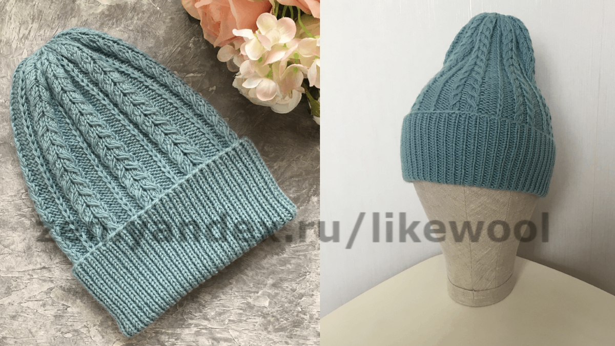 Очень красивая модель шапочки с отворотом, она немного с завышенной макушкой, эту модель можно носить как с помпончиком, так и без, подойдет как деткам , так и взрослым.