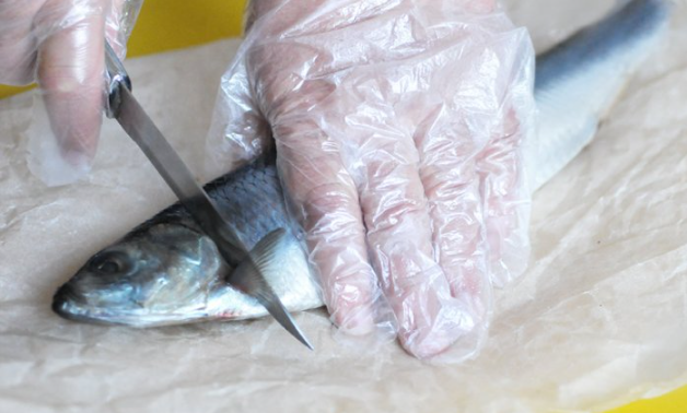 1. Приготовьте место для разделки рыбы. Можно в стиле ретро и газеткой