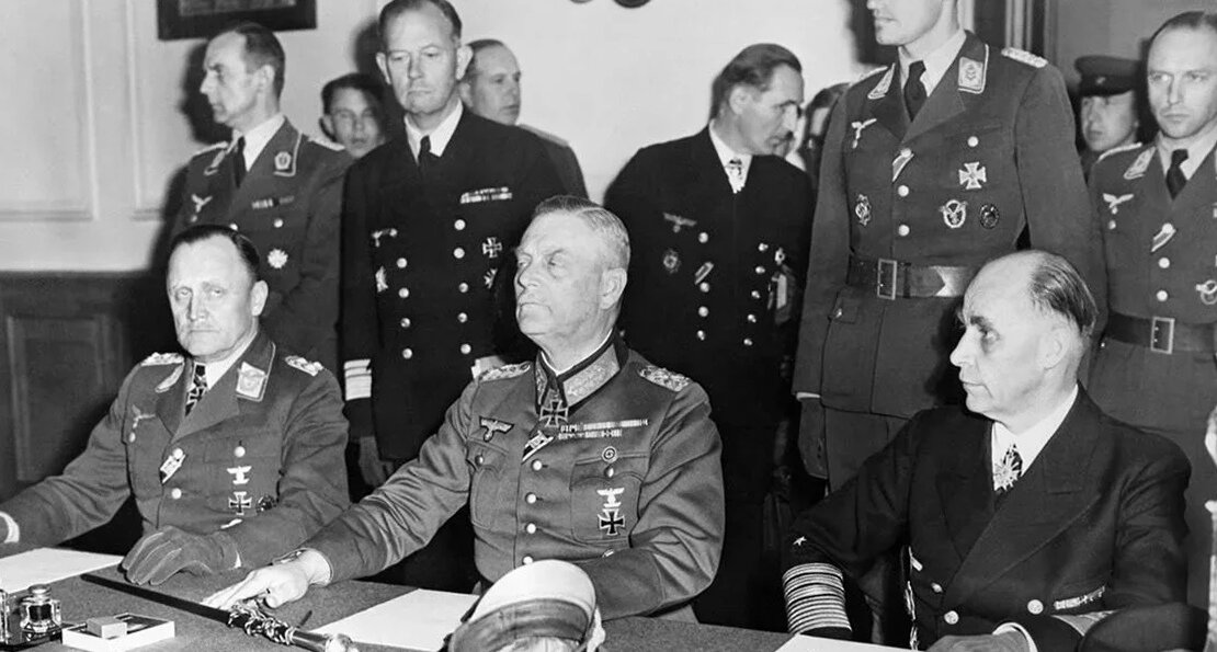 Церемония подписания капитуляции должна была состояться в саперной школе вермахта в районе Карлсхорст, где располагался штаб 1-го Белорусского фронта маршала Жукова. Делегации западных союзников и немцев прибыли сюда на машинах из аэропорта Темпельхоф.