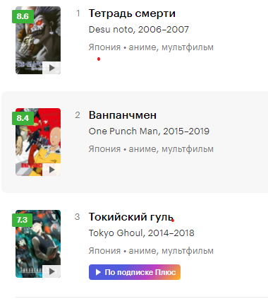 Если зайти в Google и написать в строку " 3 лучших аниме", то вот что выдает поисковик: