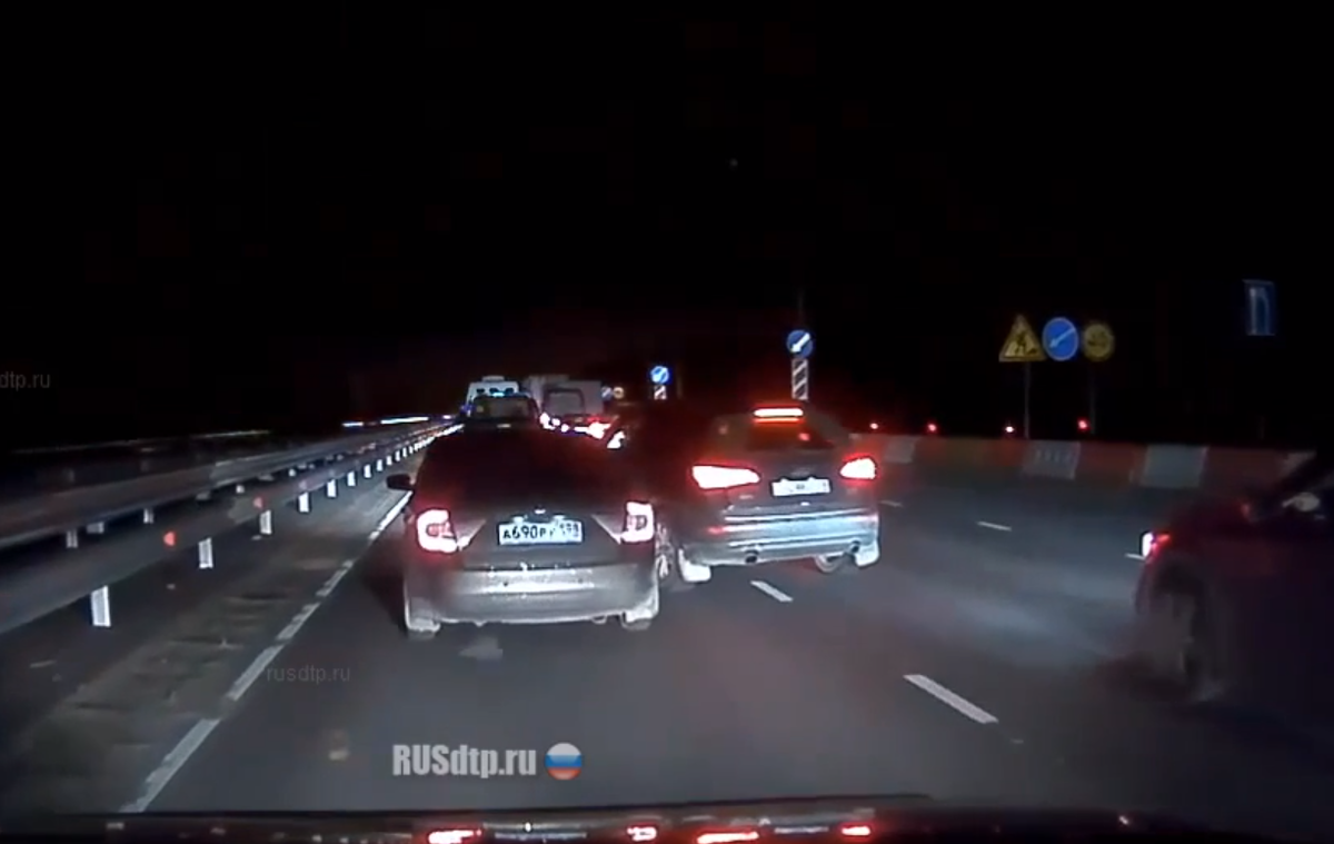 ДТП, которое хочется привести в пример, произошло на трассе “Кола”. Привычная ситуация – ремонт дороги, сужение до одной полосы движения, стоит советующий знак. Дама на Ауди, включив указатель поворота, достаточно резко попыталась перестроиться в ряд.