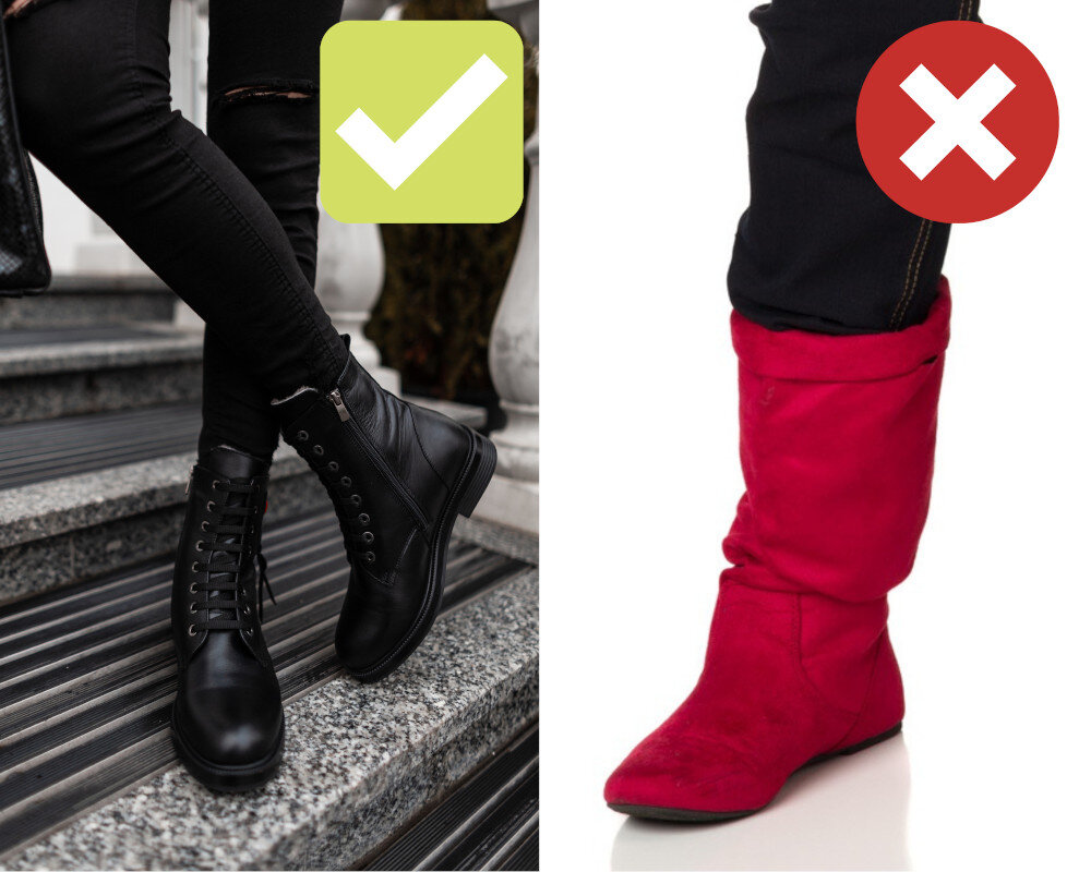 ✅Если вы крупная и невысокого роста, не сочетайте ботильоны с брюками-кюлотами и широкими джинсами до щиколотки.
