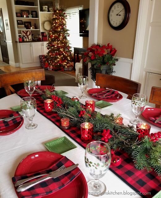 Ёлочки и пряничные домики в центре стола добавляют не только сказочности и волшебства, но и блеска, уюта и романтичного настроения 👍
