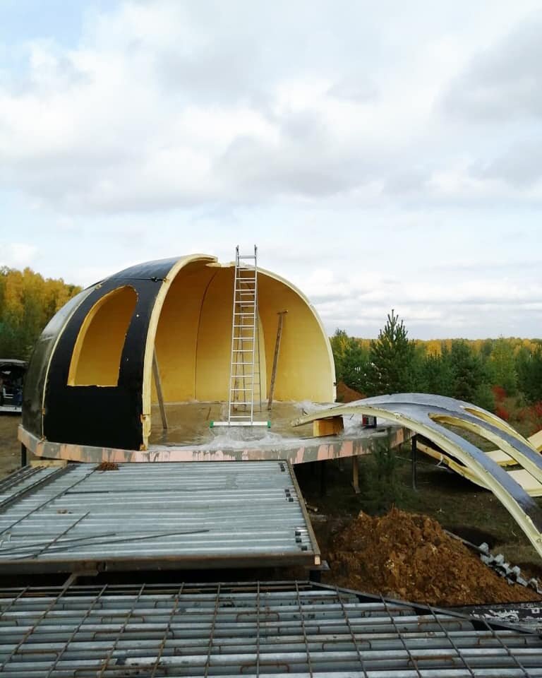 🏡 На фото – процесс строительства купольного дома в Челябинске. Это купол площадью 50 кв. м + будет шале 14 кв. м из 3-х секций. На следующий год