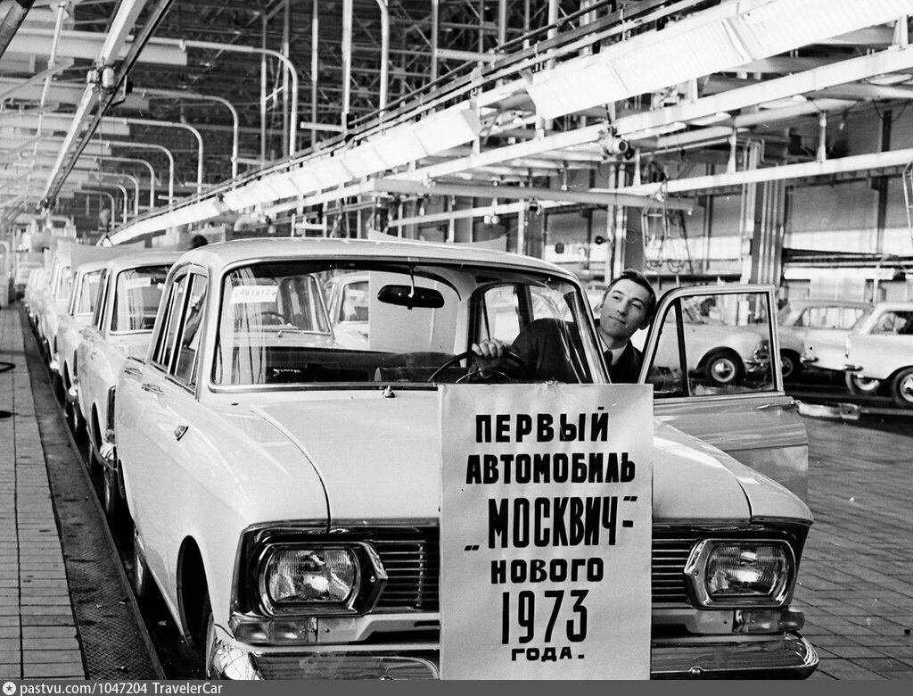Продолжение цикла публикаций о АЗЛК. В прошлой части я рассказывал в целом о новой площадке, расположенной в Текстильщиках. В этой части заглянем в производственные цеха в Текстильщиках и посмотрим, как шло производство Москвича-412 (и, соответственно, Москвича-408). М-408 производился с 1964 по 1976 год М-412 производился с 1967 по 1976 год Первый автомобиль 1973 года! Жизнь на конвеере. Попробуем пройтись по-порядку по всей производственной схеме. Напомню, что в 1971 году, после ввода в эксплуатацию нового автосборочного корпуса в Текстильщиках, основные технологические процессы переехали сюда с Промплощадки 1. Было закуплено новое оборудование, штампы, оснастка. По-сути, с нуля был построен новый завод. 1. Участок сборки/сварки/рихтовки кузовов. 2. Участок окраски и грунтовки. 3. Участок проверки качества окраски. 4. Сборка кузовов, установка элементов салона. 5. Участок сборки кузова с двигателем и шасси - т.н. "свадьба". 6. Главный конвеер. 7. Готовые автомобили сходят с главного