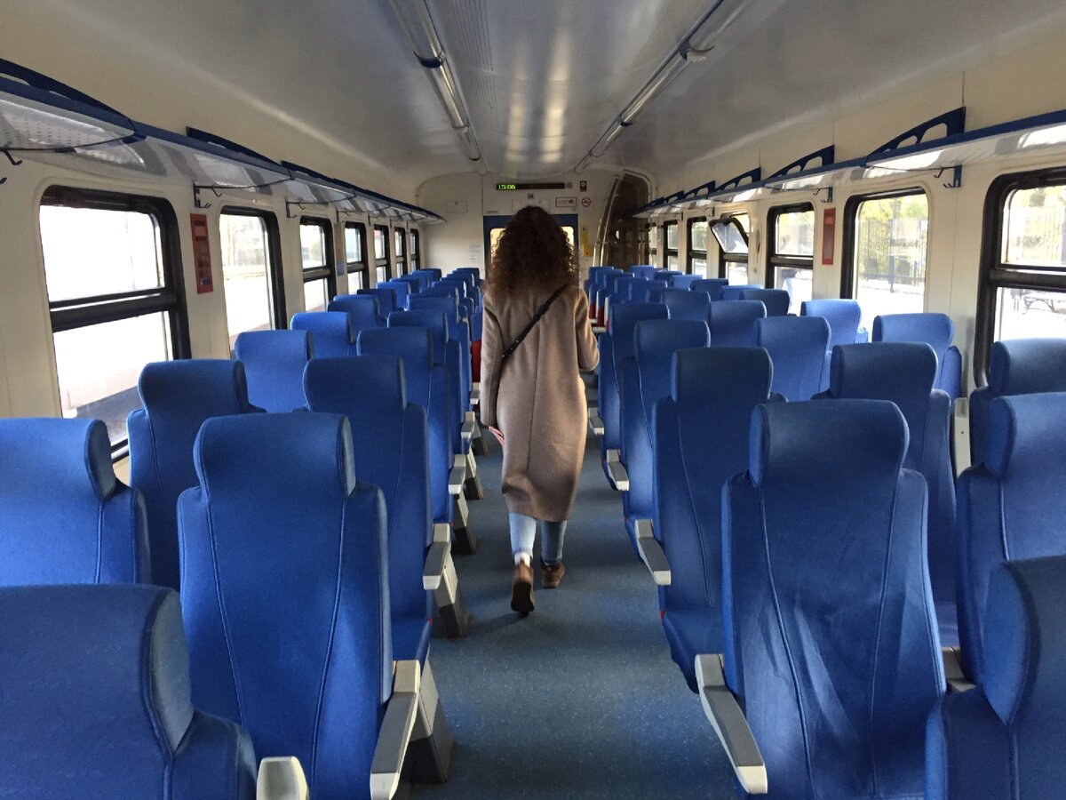 Я ожидал увидеть что-то современное в стиле ласточек, но нет, обычная электричка как и все остальные, только на боку мелким шрифтом написано «комфорт», решил это шутка. Попав внутрь наконец стала заметна разница. Сидения, как видно на фото, удобные, с подлокотниками и подголовниками. А бонусом к этому стол, как в самолетах. Что было особенно актуально потому что мы ехали с кофе.