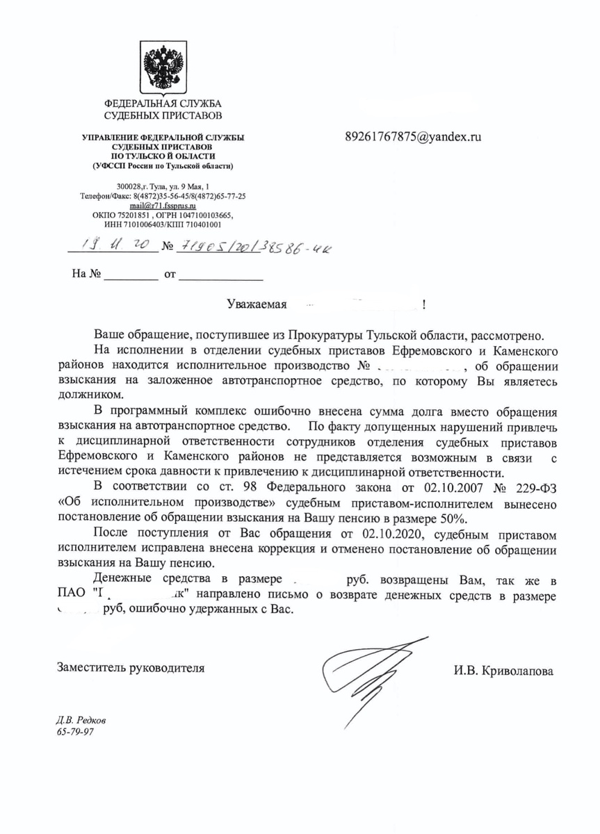 Ответ ФССП прям «радует» пристав ошибся )) Как можно так ошибиться? Я понимаю если бы в исполнительном листе было написано взыскать с бабы Тони 7 000 рублей, а пристав бы взыскала 70 000, допускаю тут можно ошибиться. Но в нашем исполнительном листе написано обратить взыскание на автомобиль. Ужас.