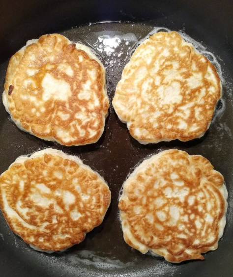 Жарить оладьи надо на среднем огне по 1,5-2 минуты с каждый стороны до образования румяной корочки.
