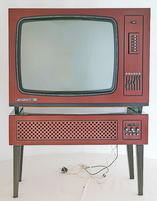 Первые бытовые цветные телевизоры появились в СССР в 1950-х годах, однако по-настоящему они стали распространены только в 1970-х. И хотя самыми популярными были модели с маленьким размером экрана, которые можно было брать с собой на природу и на дачу, любители смотреть кино и телепередачи на большом экране могли рассчитывать на ЭЛТ-телевизоры с диагональю экрана до 61…сантиметра.