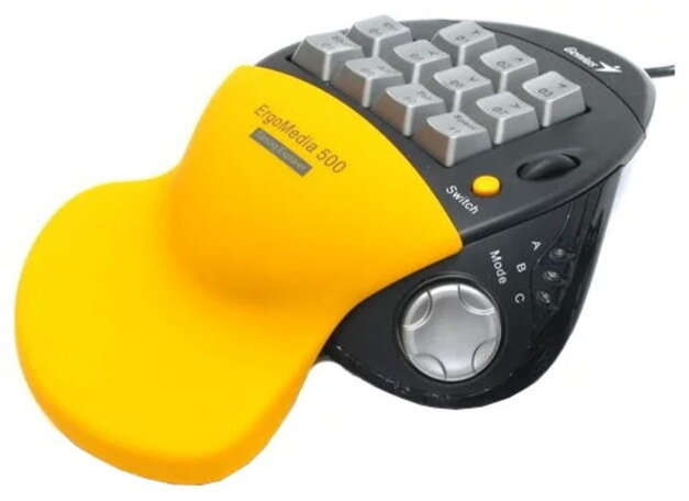 Похожая на опахало клавиатура с 69 кнопками и трекболом. Из недостатков – нет подсветки, нет колесика, нет клавиш F.