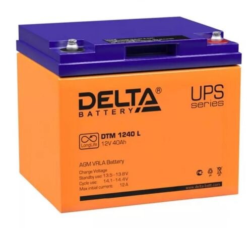 В этой заметке речь пойдет об аккумуляторе Delta DTM 1240 L, выполненным по технологии AGM. Это категория АКБ с клапанным регулированием (VRLA). Напряжение составляет 12 вольт, а номинальная ёмкость 40 Ач. При размерах 198 х 166 х 170 мм вес этой аккумуляторной батареи находится у отметки 14 кг.