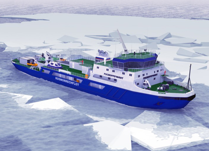 Ледокол мощностью 12-14 МВт, способный работать на СПГ, предназначен для обеспечения круглогодичной работы замерзающих портов России, а также для замены ледоколов, выработавших срок службы.