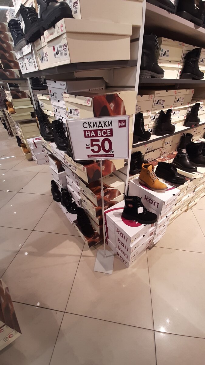 Привет всем, в магазине Кари распродажа, правда я очень удивилась посмотрев на цены. Продавцы сказали, что цены уже со скидкой, но по моему эти ботинки и кроссовки и без скидок стоили также. Но вообщем смотрите может у Вас на этот счет будет другое мнение.