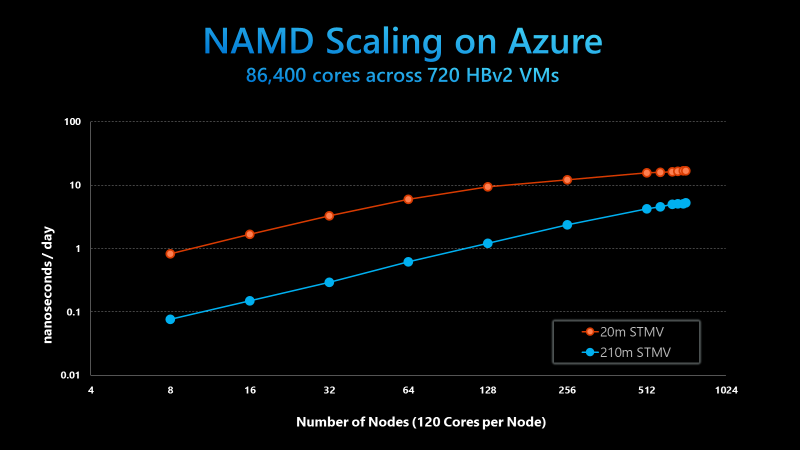 В облаке Microsoft Azure был достигнут новый рекорд масштабирования высокопроизводительных вычислений (HPC). Там удалось создать виртуальный кластер с 86 400 ядрами CPU. Для этого использовались физические серверы на базе AMD EPYC 7002 с подключением HDR InfiniBand, которые объединили в 720 виртуальных машин Azure HBv2. Это дало пиковую производительность на уровне 5 Пфлопс.