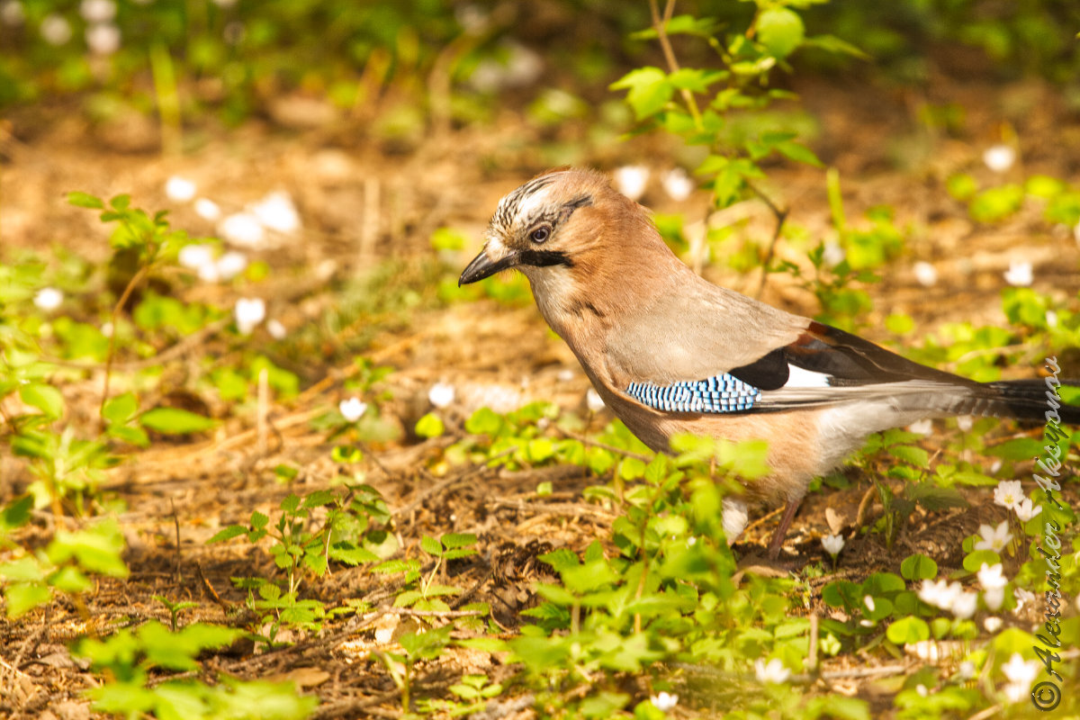 Один раз мне повезло снять соек с близкого расстояния. Я шел по дороге и увидел их на небольшой полянке рядом. Достал аппаратуру из сумки и приступил к съемке... Думаю, это были молодые птицы. Ходили по земле и не улетели при моем приближении! Кадры с хорошей детализацией получились именно в тот раз. Можно разглядеть строение перышек, глаза.